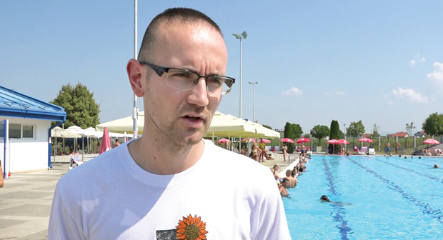 ‒ Вода је идеална, таман за ову високу температуру ван базена. Тренутно сам гост у Бањи Ковиљачи и с обзиром на то да тамо нема отвореног базена, дошао сам до Лознице да се освежим ‒ каже Драгослав.