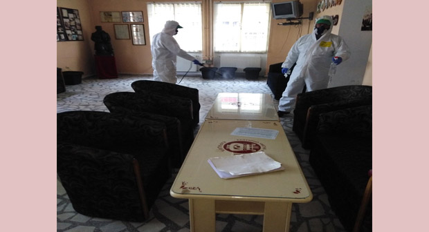LOZNICA (3. april 2020) – U sklopu dezinfekcije javnih površina i ustanova, danas je dezinfikovan prostor u Vukovom domu kulture.