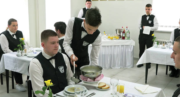– Ovo je jedno perspektivno zanimanje (konobar), zanimanje koje je dosta traženo u našem gradu i okolini. Svi naši učenici odmah po završetku školovanja mogu vrlo lako i brzo da nađu posao, što u suštini i predstavlja cilj njihovog školovanja. Mi u školi imamo dobre uslove za školovanje ovog obrazovnog profila, gde učenici na kabinetskim vežbama mogu da stvaraju simulaciju onoga što ih čeka u njihovom poslu u restoranu – objasnio je profesor ugostiteljske grupe predmeta Đorđe Marković.