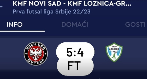 LOZNICA (22. OKTOBAR 2022) – U četvrtom kolu Prve futsal lige Srbije u maloj dvorani Spensa sastale su se ekipe novajlija u Ligi, Novi Sad i Prvak Srbije iz protekle sezone, Loznica Grad 2018.