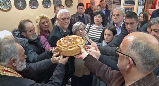 Lomljenje slavskog kolača u Kulturno-umetničkom društvu “Karadžić”. Foto: TV Lotel